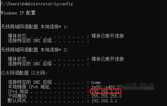 按win+R,输入cmd,在cmd'窗口输入"ipconfig",记住自己的ip地址